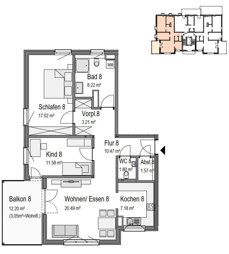 2. Obergeschoss links, Wohnung 08